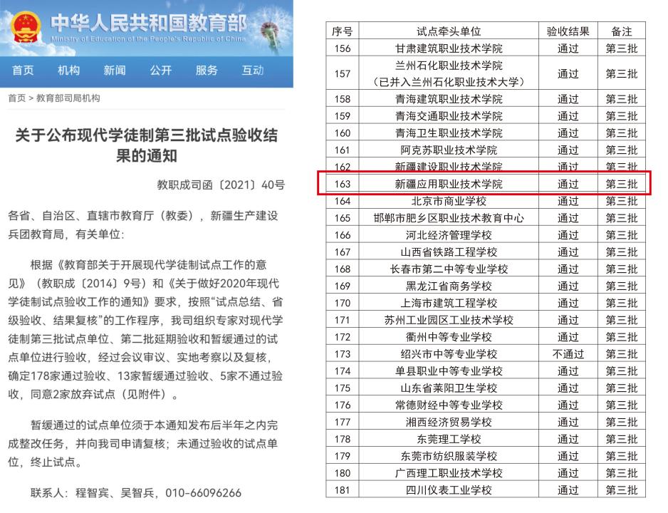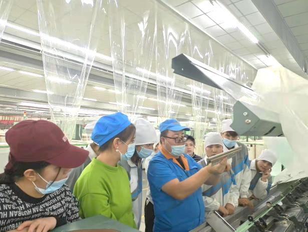 新疆天棉基业纺织有限公司作为奎屯最大的纺纱生产企业,与我校保持长期的合作关系。自2015年建厂以来,一直是我校校外实习实训基地,已累计接收实习实训学生429人。2018年我校与新疆天棉基业纺织有限公司合作获批现代纺织技术、机械制造与自动化两个国家第三批现代学徒制试点专业项目。在校企双方的共同努力下,试点项目于2021年9月顺利通过了国家教育部的验收,取得了丰硕的成果及显著的成效。