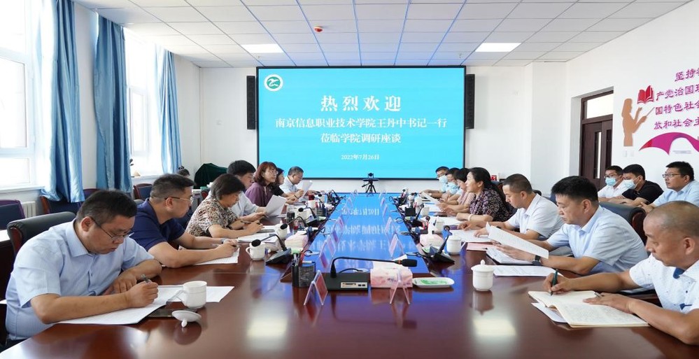7月26日,南京信息职业技术学院党委书记王丹中率领考察调研组一行来学院进行交流座谈。