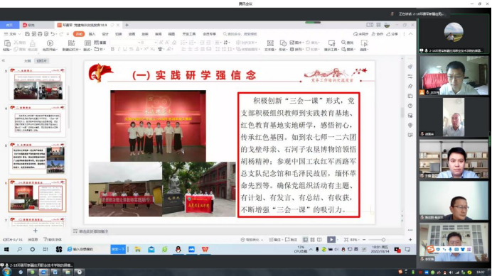 张培书记以《新师大全国党建工作样板支部建设经验分享》为题,围绕全国党建工作样板支部创建过程、党建工作与学科特色融合、学生党员管理、党建品牌建设和凝练等方面进行经验分享和详细解读。授课内容将样板党支部建设和实施过程中的具体案例相结合,具有很强的针对性、实用性和可操作性,为学院各党组织申请全国、自治区样板党支部提供了宝贵经验,也为解决党支部党建工作中存在的各类问题拓展了工作思路。