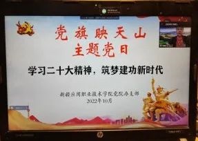 机电工程学院党总支10月16日起连续组织班级收听收看党的二十大开幕会盛况直播,并组织党员进班级宣传宣讲,引导学生学习领会党的二十大精神、树立伟大理想抱负,为中华民族伟大复兴的中国梦不懈奋斗。传媒艺术学院组织党员干部对学生进行党的二十大精神的宣讲,不断铸牢中华民族共同体意识,推动学习宣传贯彻党的二十大精神走深走实。
