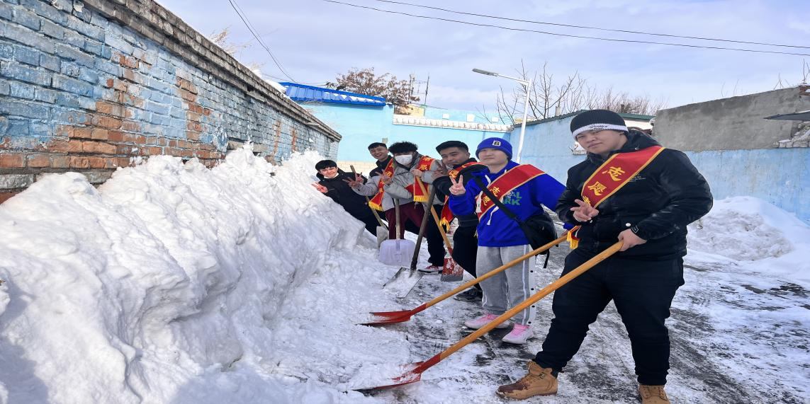 在社区内,能看到机实践团成员们忙碌的身影,他们带着铁锹、小铲子等各种工具,认真清扫路面垃圾、清除路上的积雪,为文明社区贡献青春力量。