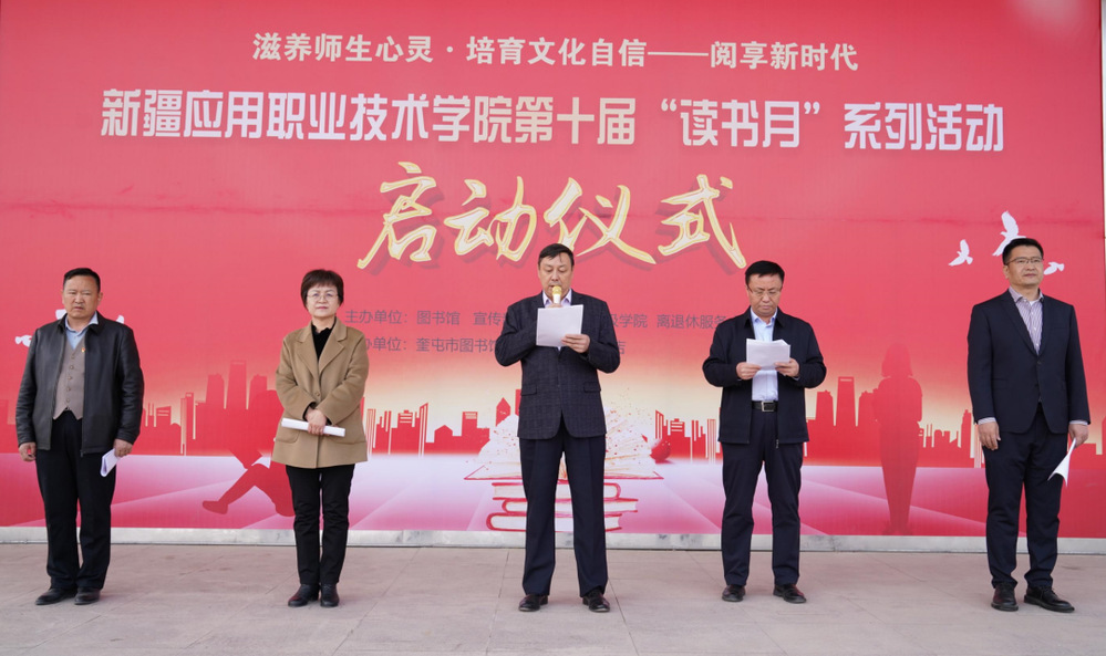 4月10日,学院举行第十届“读书月”活动启动仪式。学院党委副书记、院长叶列吾别克·那克斯别克,学院党委委员、宣传部部长卡吾孜亚提·斯德克,奎屯市图书馆、新华书店有限责任公司相关负责人出席活动,学院图书馆相关负责人,师生代表参加启动仪式。