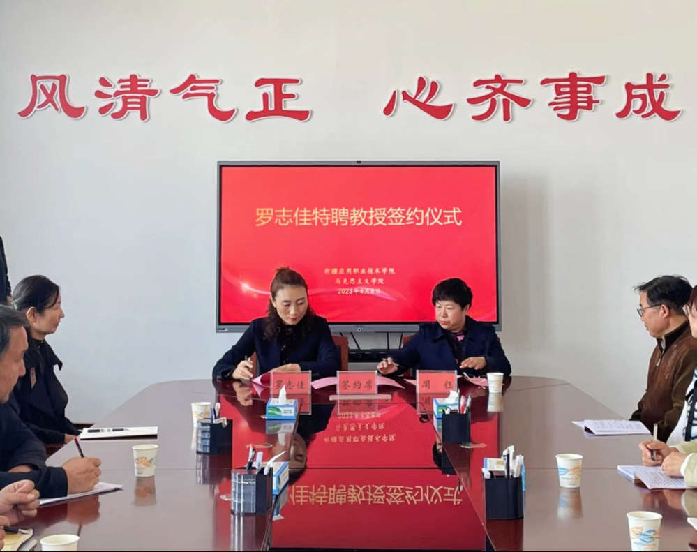 48日,马克思主义学院举行特聘教授聘任签约仪式,聘请新疆师范大学马克思主义学院副院长、教授、硕士生导师罗志佳为学院特聘教授。学院党委委员、副院长周钰出席会议,马克思主义学院全体教师参加会议。