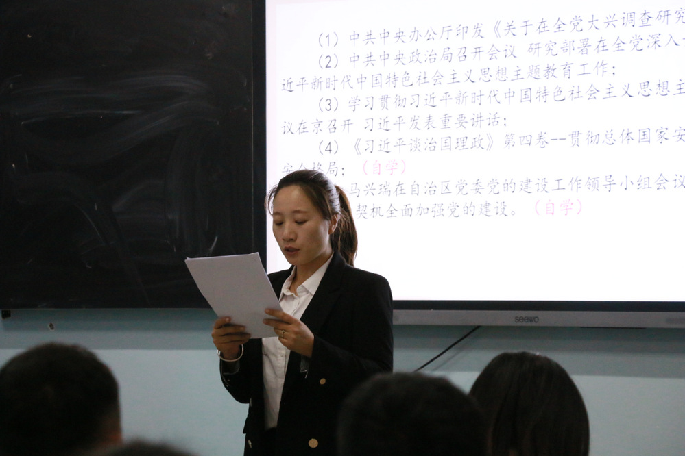 活动中,全体党员重温了入党誓词,诵读学习新修改的《中国共产党章程》,集中学习“学习贯彻习近平新时代中国特色社会主义思想主题教育”相关文件及新闻报道。随后围绕主题教育开展研讨交流和建言献策活动,发言教师们表示调查研究是决策之基,成事之道,在之后的学生工作中,要用好调研“传家宝”,架起师生“连心桥”。