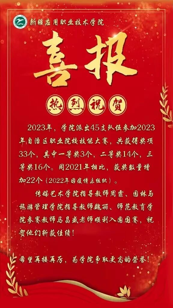 喜报——学院荣获2023年自治区职业院校技能大赛33个奖项