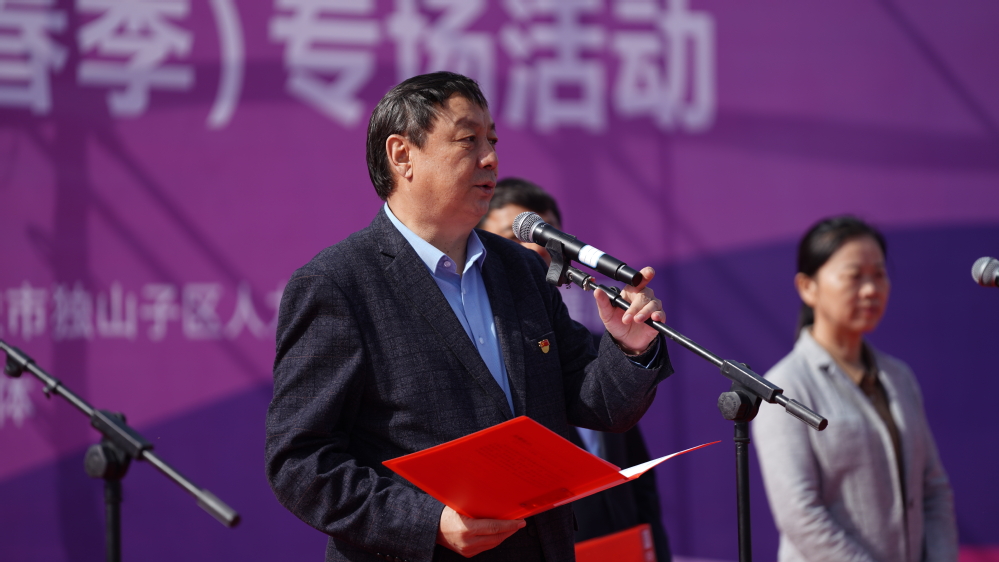 图为 奎屯市市委常委、宣传部部长古拉西·努尔兰讲话现场