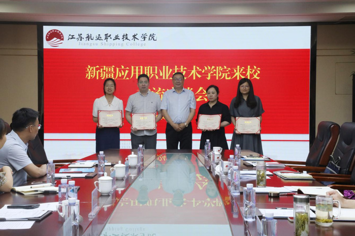 我校与江苏航运职业技术学院党委副书记、校长吴丽华进行了座谈交流。吴丽华校长介绍了本校的办学历程,并从专业特色、专业优势、国际输出专业等方面介绍了江苏航运职业技术学院的智慧与方案。同时,双方深入交流了中外合作办学项目的背景、办学定位、人才培养模式等情况。江苏航运职业技术学院相关部门负责同志就国际化办学做了详细的介绍并就留学生培养、师资培养给出了建议。座谈会上,澳门网投向江苏航运职业技术学院赠送了援疆光荣牌匾,并向优秀援疆柔性人才颁发了荣誉证书。