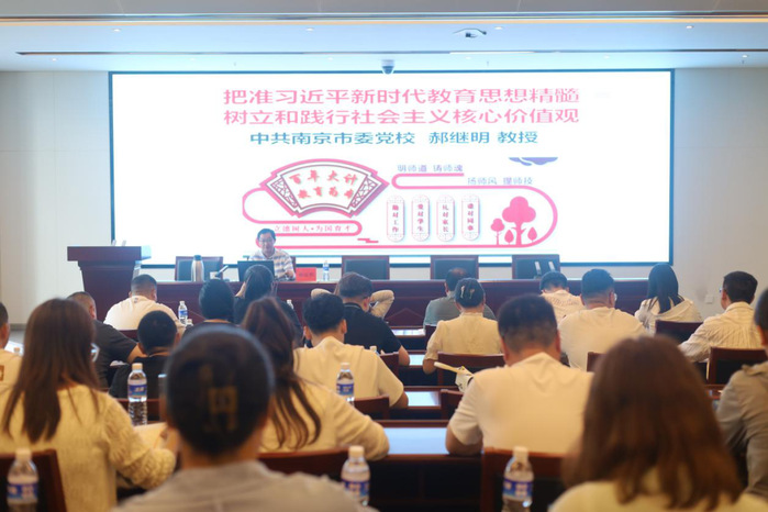 南京市委党校郝继明教授做了题为《把准习近平新时代教育思想精髓 树立和践行社会主义核心价值观》专题报告。