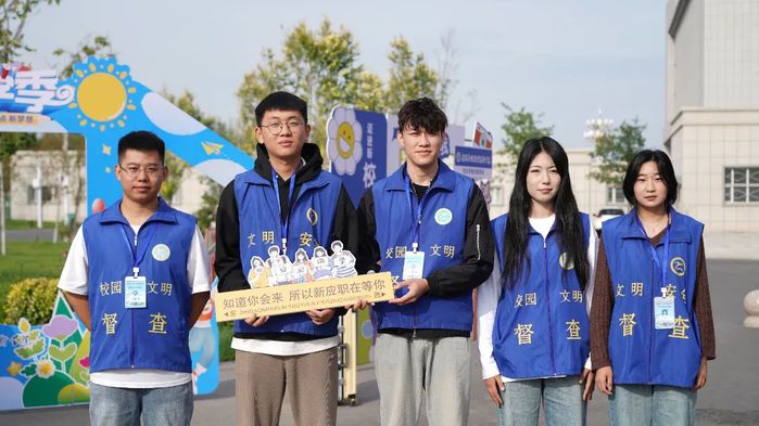 迎新现场有条不紊,创意十足的迎新拱门、迎风飘扬的道旗、热情洋溢的条幅、新颖别致的展板,成为今年迎新工作中一道道美丽的风景线。同时,在三个校区设置了专属迎新打卡地,新同学们在打卡留念,未来的故事由此展开。