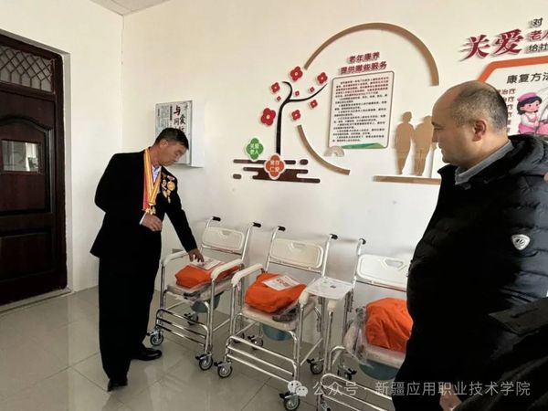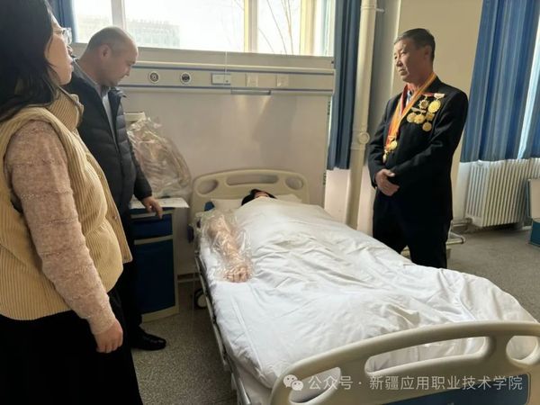 居马泰·俄白克书记多年来坚守在乡村医疗最前线,其无私奉献、救死扶伤的感人事迹早已深入人心。在学院领导及师生的陪同下,居马泰·俄白克书记还走进了护理与健康学院的实训室。在参观过程中,实训室负责人为居马泰·俄白克书记详细介绍了实训课程设置及教学开展情况。居马泰·俄白克书记对学院完善的实训条件表示赞赏。
