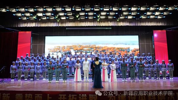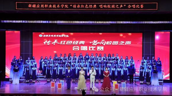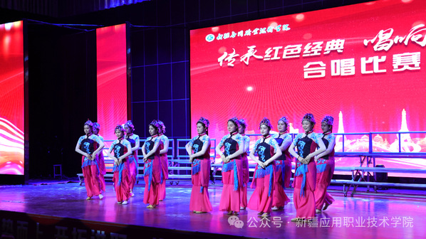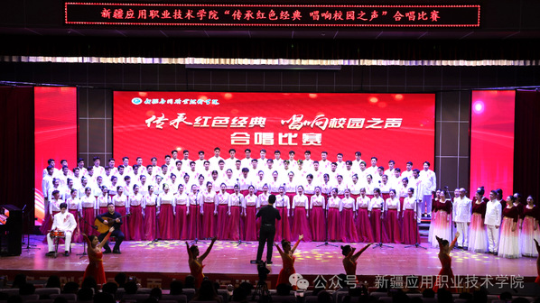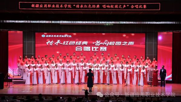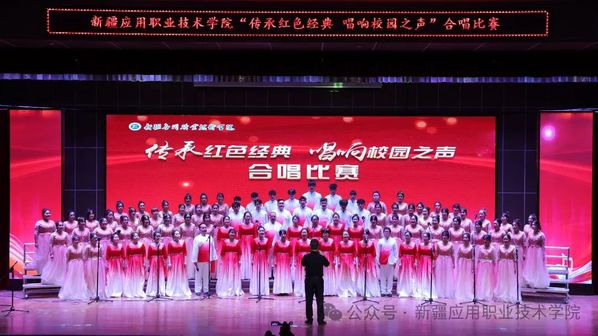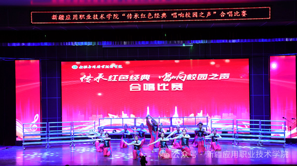 各参赛队伍在舞台上尽情绽放,现场气氛热烈,掌声不断,充分展现了新时代大学生的青春校园风采和爱国情怀。他们用精湛的唱功和精彩的表演,诠释了对校歌以及红色经典歌曲的理解和感悟。在师生们共同参与下,不仅增强了团队凝聚力,也加深了彼此之间的情谊。