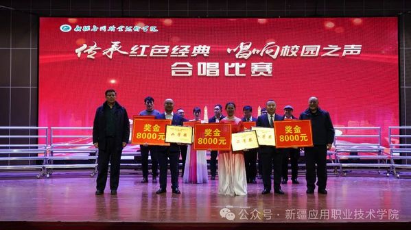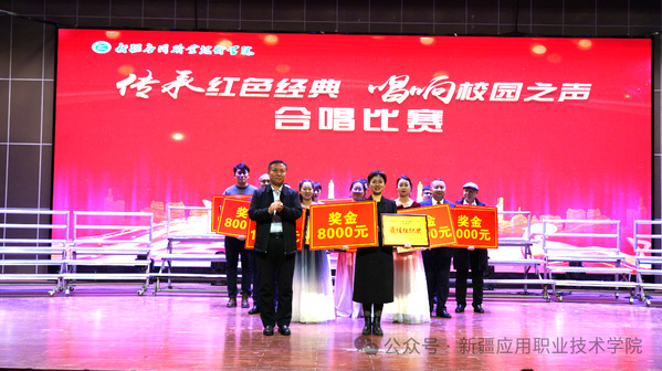 新疆音乐家协会会员、新疆声乐协会会员、奎屯市高级中学音乐老师刘筱琳,伊犁州中学音乐专家库评委、奎屯市第三中学音乐教研组长胡燕,奎屯市政协委员、百鸣艺术学校校长王燕为获得优秀奖获奖单位石油与化学工程学院、通识学院、纺织与服装学院颁奖。