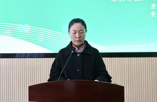 图为 学院科研处(产教融合处、教育质量评估中心)班子成员惠晶致辞