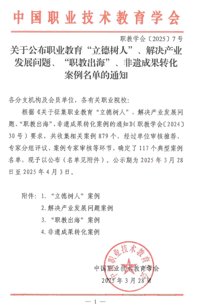 热烈祝贺我校典型案例《融入花文化非遗押花技艺传承成果转化与应用》入选中国职业技术教育学会“解决产业发展问题”典型案例!