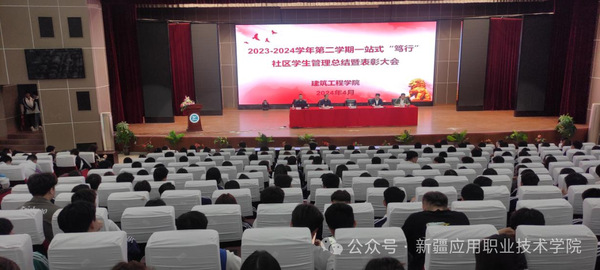 为持续加强和改进学生管理和服务工作,并对在各类职业技能竞赛中取得优异成绩的学生进行表彰奖励,4月23日下午,建筑工程学院一站式“笃行”社区在主校区学术报告厅举行学生管理工作总结暨表彰大会。建筑工程学院相关负责人、学工办主任出席会议,全体辅导员、班主任、获奖学生代表、优秀宿舍学生代表、各班学生代表共800余人参加会议。