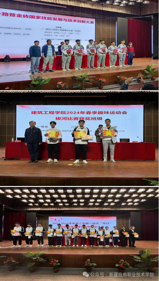 为了发挥学生榜样的模范带头作用,建筑工程学院党总支副书记、副院长赛力克波勒老师宣读了各类比赛获奖学生名单、优秀宿舍名单,并与获奖学生指导老师及辅导员进行了颁奖合影。