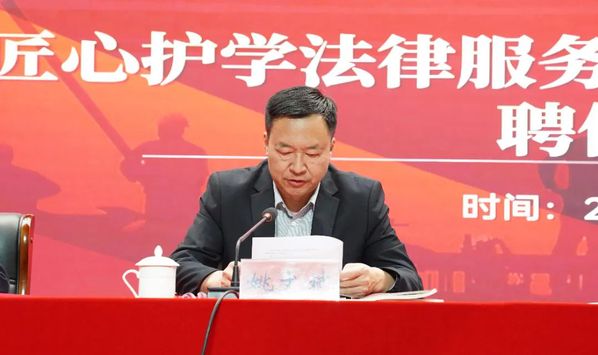 图为 学院党委委员、纪委书记姚文斌宣读聘任二级学院法治副院长文件