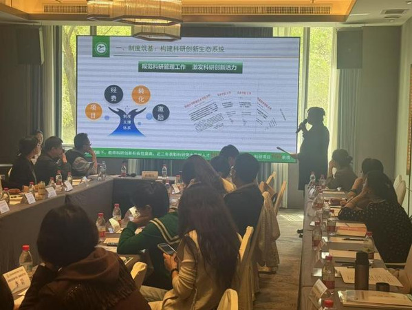 学院党委委员张文汇,以《双驱聚力拓新局 职教科研育匠才——科研创新实践与区域服务探索》为题,从制度筑基、双驱牵引、人才培育、品牌铸魂、未来展望等五个方面,与各参会单位进行经验分享学院近年来科研工作的成果成效、创新模式做法。自治区教育厅领导、各兄弟院校对我校的创新模式表示认可,并表示将与我校加强合作,共同推动自治区职业教育科研工作高质量发展。