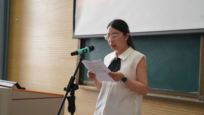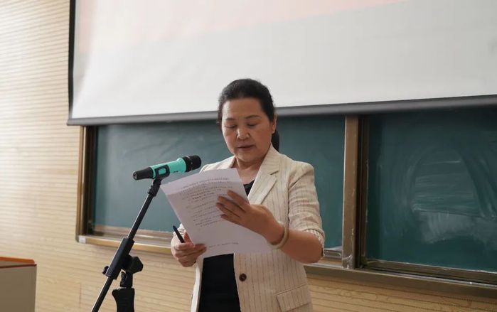 图为 学院党委书记陈梅兰主持
