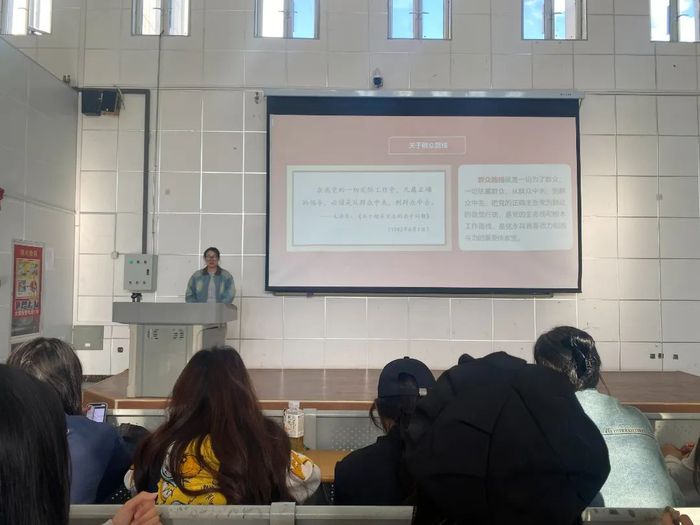 讲座伊始,王小红老师从理论层面解码群众路线的时代内涵。她结合党的二十大精神、党的二十届三中全会精神与新时代发展需求,深入剖析群众路线“一切为了群众,一切依靠群众,从群众中来,到群众中去”的核心要义,并通过脱贫攻坚、乡村振兴等鲜活案例,生动阐释了群众路线在当代社会治理中的重要价值与创新实践,引导学生深刻认识到群众路线是党和国家事业发展的生命线,也是大学生开展社会实践的重要指引。