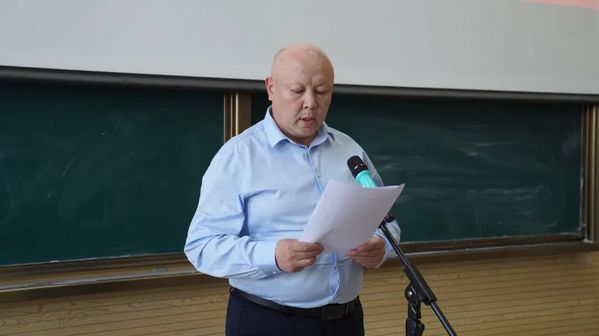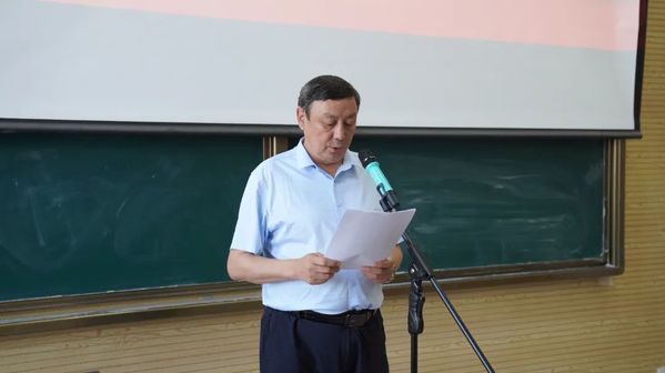 图为 学院党委副书记、院长叶列吾别克·那克斯别克讲话