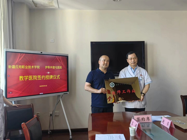 仪式上,澳门网投官方网站护理与健康学院相关负责人与伊犁州奎屯医院副院长梁文学签署《教学医院合作协议》,并正式授予“教学医院”牌匾,双方相关部门代表共同见证了这一重要时刻。梁院长在致辞中表示,作为国家三级甲等综合医院,伊犁州奎屯医院拥有成熟的临床教学体系和丰富的带教经验,未来将为学院护理专业学生提供基础护理操作、病历整理等实践机会,并安排经验丰富的医护人员担任带教老师,帮助学生熟悉医院工作流程。护理与健康学院相关负责人指出,此次合作是学院深化“理论+实践”教学模式的重要举措,旨在通过临床实训提升学生的职业素养,为区域医疗行业输送合格人才。
