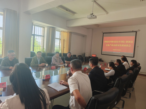 新源县农牧业与农产品加工业发达,并拥有旅游、矿产等优势产业。调研团在新源县文化体育广播电视和旅游局参加座谈交流。新源县县委常委、宣传部部长范国强及当地相关政府部门、龙头企业参加此次座谈。新源县政府领导介绍了当地围绕特色农牧业、文化旅游打造的全产业链、推进乡村振兴的发展规划,明确表示将在校企合作、项目落地等方面给予支持,期待借助学院力量,为产业发展培养更多“下得去、留得住、用得上”的高素质应用型人才。