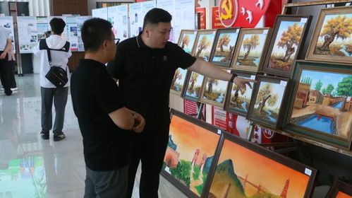 在本次展览中,55幅沙粒画作品格外引人注目。毕业生们运用这一非遗技艺,创作了一幅幅展现新疆风景和人文的作品,遒劲的胡杨、古朴的民居等元素在沙粒的堆砌下跃然纸上,每幅画都凸凹有致、立体感十足,将新疆的地域特色与民族风情表现得淋漓尽致。