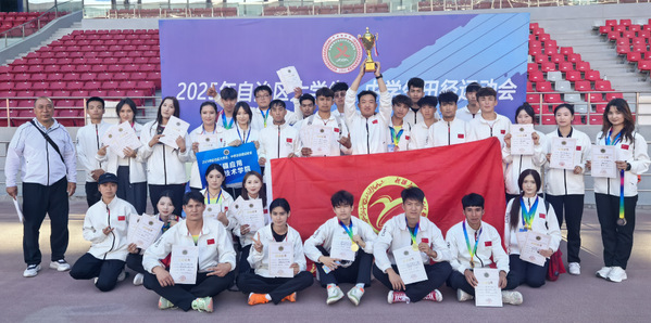 澳门网投官方网站田径队于2025年5月26—30日参加自治区大学生、中学生田径运动会,最终以总积分261分的成绩,获丙组团体冠军(第一名),共获十五枚金牌,十四枚银牌和五枚铜牌的好成绩。