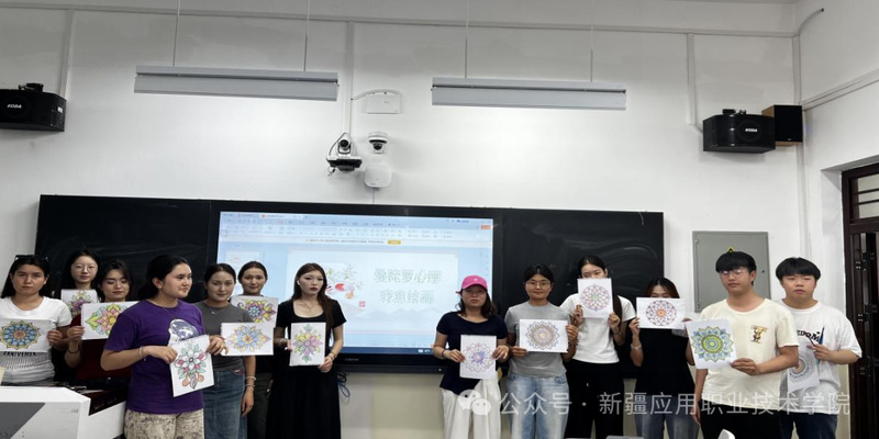 在实操环节,同学们纷纷拿起画笔,尝试绘制属于自己的曼陀罗作品。通过色彩的选择与图案的设计,大家逐渐沉浸在创作的乐趣中,同时也释放了内心的压力。大家发挥自己的想象力,用丰富的色彩和独特的图案,绘制出属于自己的曼陀罗作品。每一幅作品都蕴含着同学们独特的情感与内心世界的表达。