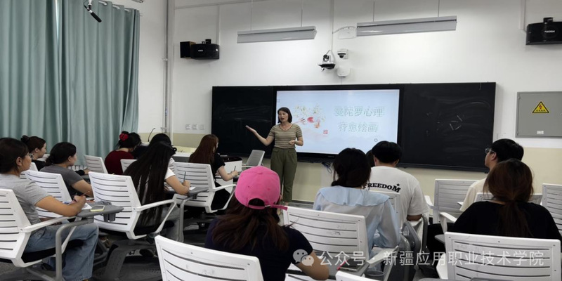 活动开始,心理辅导老师向同学们详细介绍了曼陀罗绘画疗法的起源、发展及心理学意义。曼陀罗绘画能够帮助人们在创作过程中缓解压力、探索内心世界,帮助同学们更好地理解这一艺术形式对心理健康的积极作用。