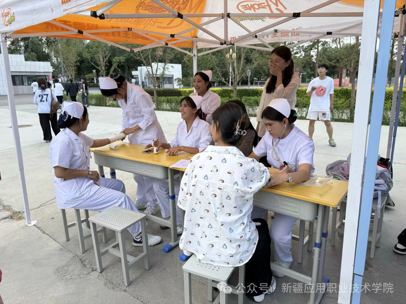 此外,本次资助育人月系列活动还特别开展了受助学生志愿服务义诊活动。由受助学生组成的志愿服务队走进周边社区,利用自身专业知识,为居民提供免费健康服务。活动现场,志愿者们分工明确,有条不紊地为居民测量血压、血糖,耐心解答居民关于常见疾病预防、护理的疑问,并针对不同身体状况的居民,给出个性化的健康指导和饮食建议。