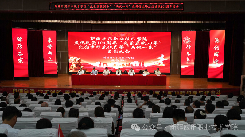 为热烈庆祝中国共产党成立104周年,深入贯彻中央八项规定精神学习教育,进一步增强基层党组织和广大党员的光荣感、使命感,激励全院上下统一意志、团结拼搏、担当作为,6月30日,学院隆重召开庆祝建党104周年活动暨“光荣在党50年”“两优一先”表彰大会。
