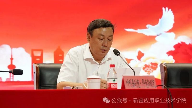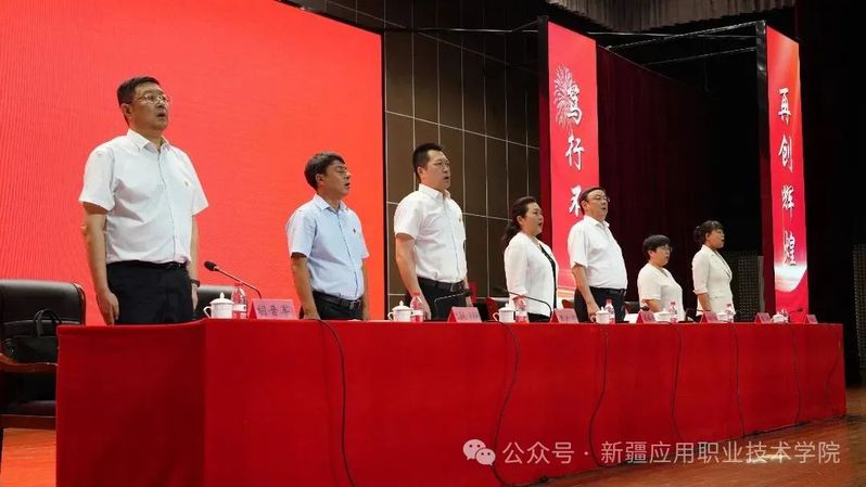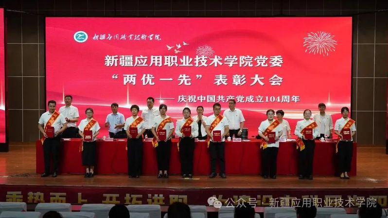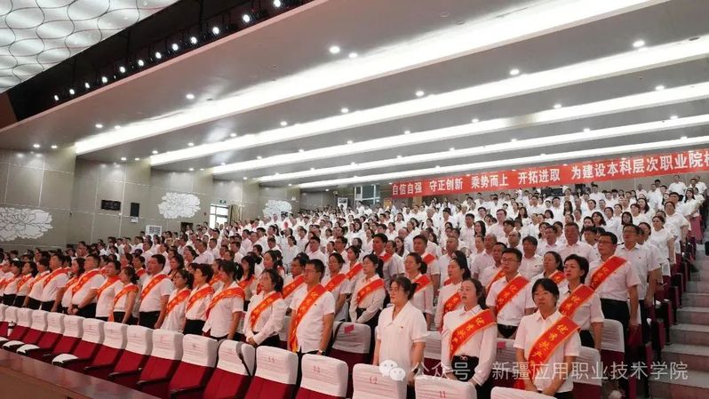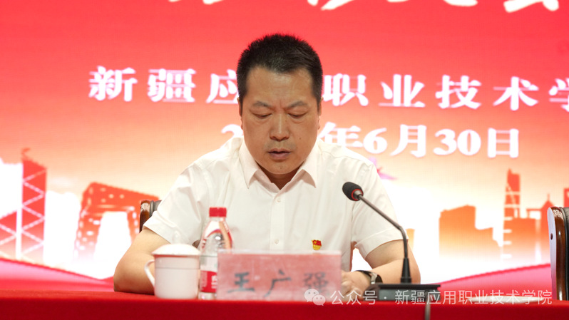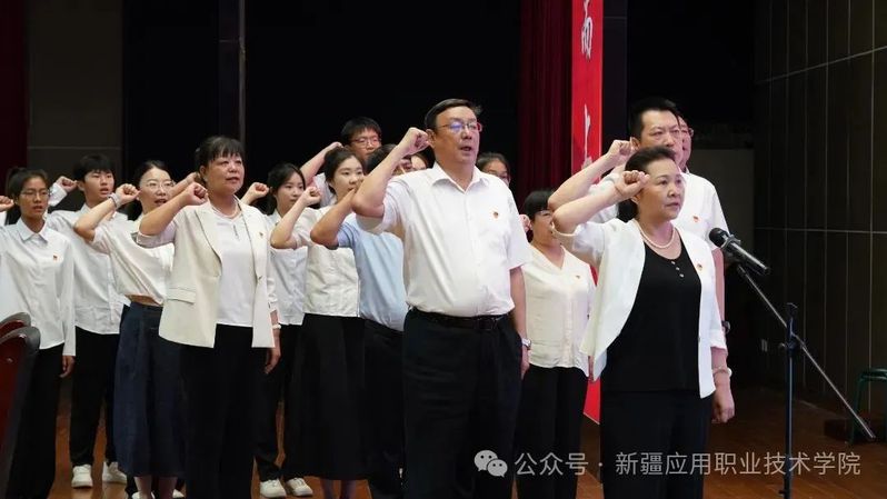 学院党委书记陈梅兰,学院党委副书记、院长叶列吾别克·那克斯别克,学院党委班子成员,“光荣在党50年”老党员代表,“两优一先”受表彰对象及全体教职工参会,以庄严仪式向党的生日献礼。学院党委副书记、组织人事部(教师发展中心)部长(主任)王广强主持会议。