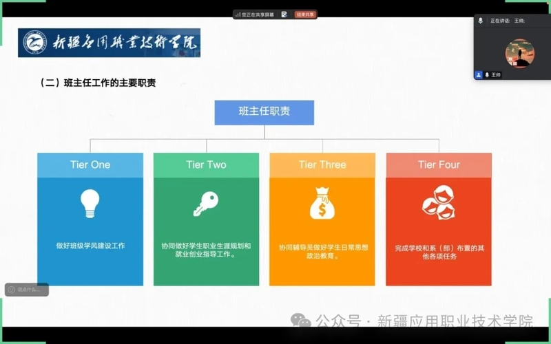 王帅详细阐述了加强和改进学生思想政治教育是一项重大而紧迫的战略任务。他表示,学生是宝贵的人才资源,是民族的希望和祖国的未来,加强学生思想政治教育意义深远。随后,王帅对班主任管理实施办法进行了解读。他介绍了班主任的任职条件,同时,明确了班主任的主要职责,以及班主任工作的基本要求、选聘方式和月考核办法等内容。在思政科业务说明环节,王帅重点介绍了每周主题班会的相关要求、名班主任工作室的申报条件、中职班主任能力大赛、开学及寒暑假前集中学习的安排,以及安全生产值班制度等内容。