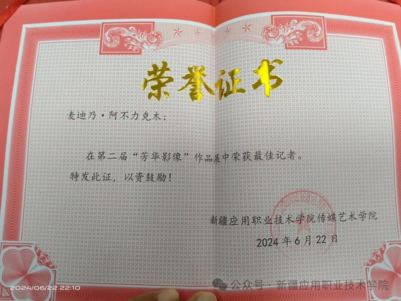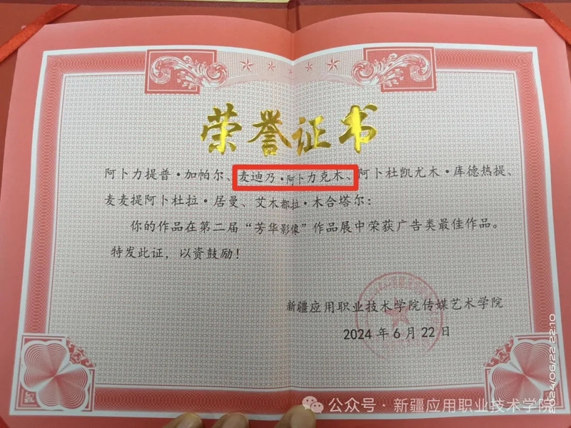 据悉,麦迪乃·阿不力克木将于7月20日正式启程,前往阿克苏市乌什县开展志愿服务工作。相信在未来的日子里,她将在西部这片广袤的土地上绽放青春光彩,不断书写属于自己的精彩篇章 ,也期待更多传媒艺术学院学子以他为榜样,积极投身社会实践,为国家发展贡献青春力量。