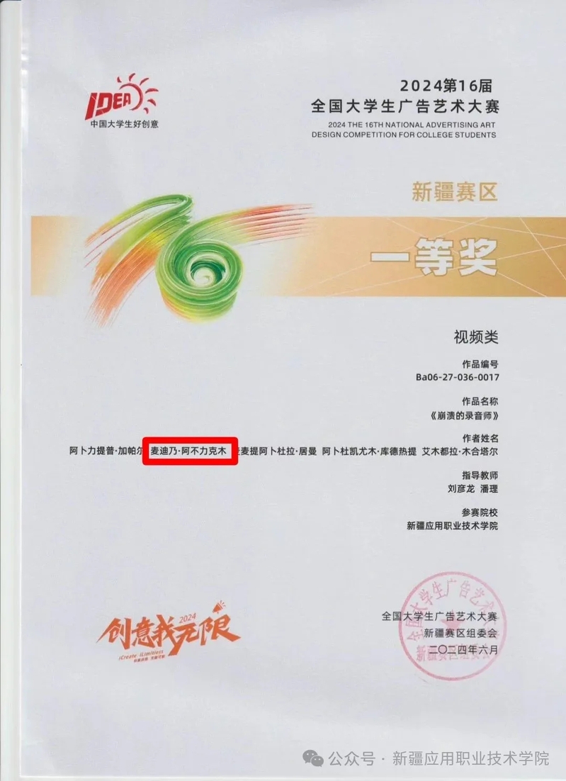近日,传媒艺术学院传来喜讯,2025届毕业生麦迪乃·阿不力克木成功入选西部计划志愿者,即将开启为期1年的志愿服务之旅,用青春和热血为西部发展添砖加瓦。