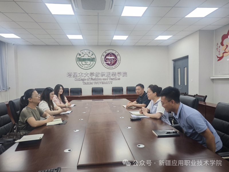 调研首日(7月9日),团队即赴塔里木职业技术学院、塔里木大学纺织服装学院取经。与东华大学援疆专家、塔里木大学纺织服装学院院长钟毅,副院长赵会等领导教师展开深入交流。双方围绕新时代下的人才培养方案重构、专业特色凝练及发展方向前瞻等核心议题,进行了富有建设性的探讨。此行不仅汲取了宝贵的办学经验,更强化了校际协同育人的共识,为学院优化顶层设计注入了创新思路。