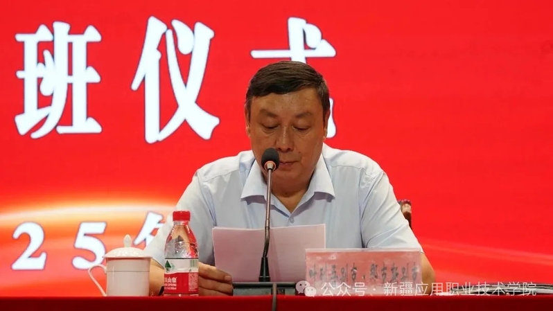 图为 学院党委副书记、院长叶列吾别克·那克斯别克主持开班仪式