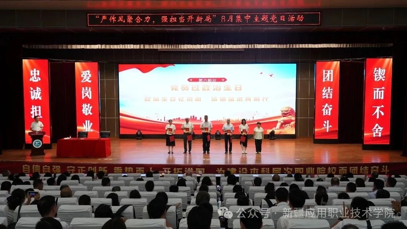 接着,进入党员过政治生日环节。党委委员、副院长周钰同志为5名8至9月份入党的党员代表颁发政治生日贺卡。党员代表朱丽亚同志回忆了入党初心,分享了奋斗故事。“初心不是一句口号,而是融入日常的行动;使命不是遥不可及的目标,而是立足岗位的坚守。”朱丽亚在发言中道出自己入党十几年的深刻感悟,无论是在社区服务群众、在校园教书育人,还是在组织人事岗位做好服务保障,变的是工作内容,不变的是为人民服务的信念和认真做好每一件事的担当。她的话语质朴而有力,不仅是个人成长的总结,更道出了新应职全体党员的共同追求。