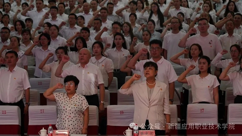 活动伊始,全体教职工起立,党员们举起右拳,在王广强同志的领誓下重温入党誓词,铿锵誓言表达了为党育人、为国育才的坚定决心。
