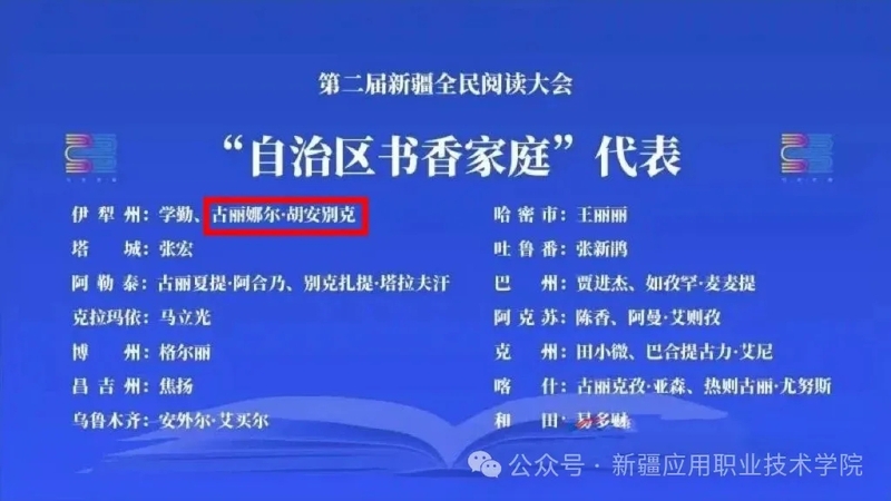 古丽娜尔・胡安别克,作为学院的骨干教师,同时也是奎屯市非物质文化遗产传承人。她不仅在教学岗位上兢兢业业,还在文学创作领域成绩斐然,是中国作家协会、新疆作家协会及新疆民间文学协会会员,并荣获新疆作家协会 “青年文学成就奖”。其丈夫阿力哈・阿汗,作为伊犁人民出版社的副编审与翻译家,策划并编辑了众多国家级、省部级项目图书,多次斩获国家级、省部级奖项,为多元文化的交流与融合贡献着自己的力量。