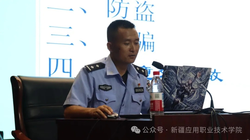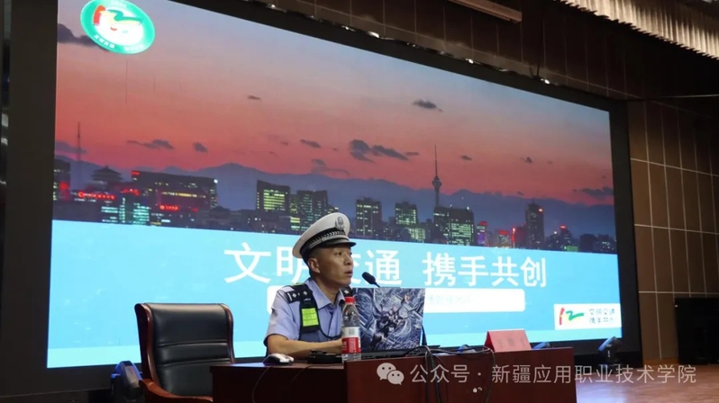 下午16时,学习主题聚焦“安全防护”与“资助政策”。奎屯市交警大队中队长王鹏飞警官结合当地校园周边交通案例,从出行规范等方面讲解交通安全知识,提醒同学重视出行安全。