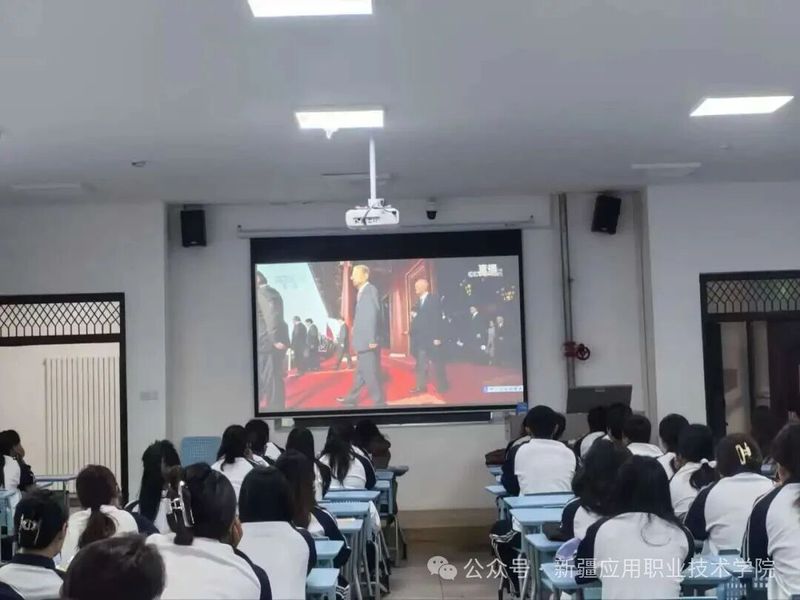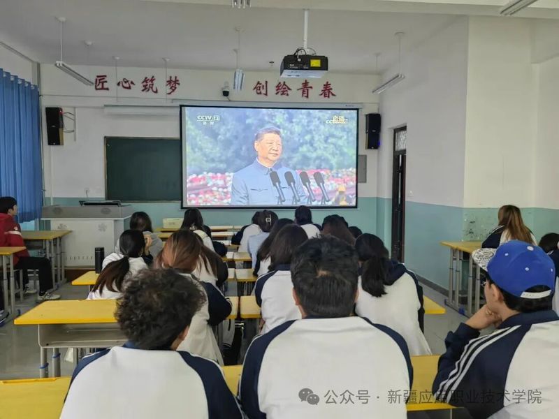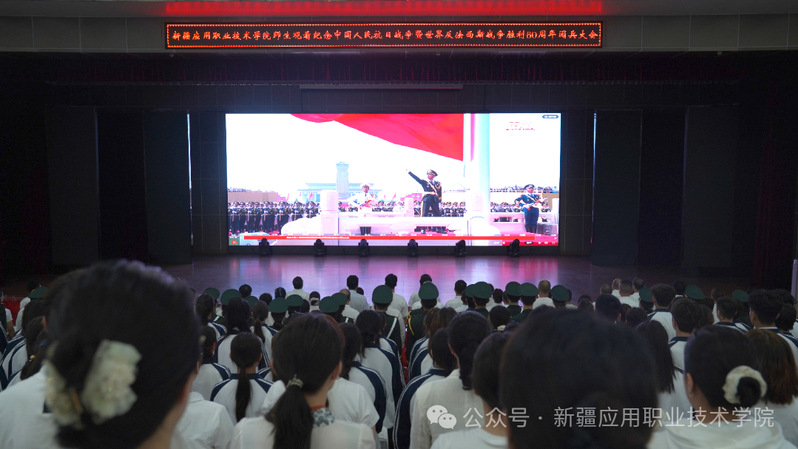 2025年9月3日9时,澳门网投官方网站组织全体师生通过主会场与分会场同步观看“纪念中国人民抗日战争暨世界反法西斯战争胜利80周年大会”,学院党委书记陈梅兰,学院党委副书记、院长叶列吾别克・那克斯别克,学院党委班子成员与师生一同观看,现场气氛庄重热烈。这场跨越时空的历史回望,不仅是一次集体的精神洗礼,更成为学院一堂生动且深刻的大思政课、爱国主义教育大课,让师生在历史与现实的交汇中筑牢信仰之基。