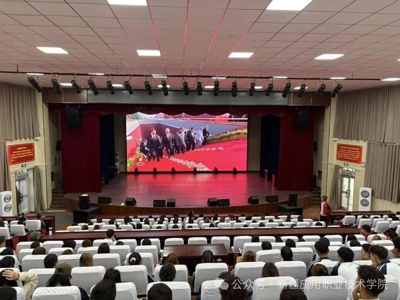 当日,学院主校区北院报告厅座无虚席,各教学楼、实训楼、演艺厅等分会场也同步接入直播,万余名师生同时在线观看,共缅抗战历史、共悼先烈英灵、共励复兴之志。大会期间,师生们神情肃穆,认真聆听习近平总书记发表的重要讲话,共同回顾中国人民抗日战争从艰难走向胜利的壮阔历程,深刻体悟中国抗战作为世界反法西斯战争东方主战场的关键作用与历史贡献。当镜头展现到抗战老兵,不少师生眼中泛起泪光,现场多次响起自发的掌声。这掌声里,有对先烈的崇敬,有对和平的珍视,更有从历史中汲取的奋进力量,让这堂“思政课”充满了直击人心的温度与力量。