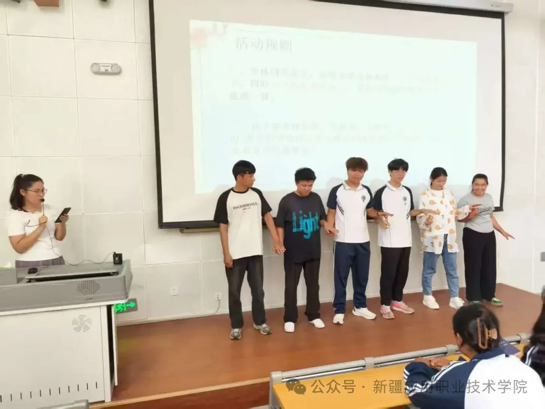 同时,伊丽菲热老师打破传统讲座“单向输出”的模式,巧妙得设计了互动环节将理论与实践完美衔接,现场随着趣味游戏的开启,氛围瞬间被点燃,成功将讲座推向高潮。学生们按规则连成一排,在“乌鸦”“乌龟”故事互动中,锻炼反应力与协作力,现场笑声不断。游戏结束后,伊丽菲热老师借情景引导学生感悟人际互动与情绪管理的关联,深化心理知识理解。