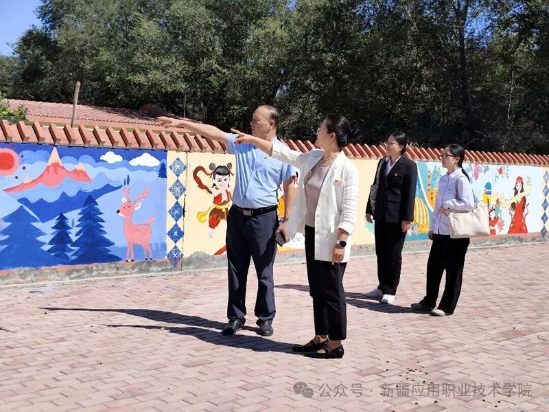 最后,众人来到村落街巷,观摩澳门网投美术教育专业师生利用暑期实践绘制的墙绘佳作。这些精美且充满乡土气息的墙画作品,为大草滩村勾勒出别样景致,让美丽乡村风貌更添色彩。不少教师驻足欣赏、拍摄留影,还有教师就地取材,借助墙画场景开展课程思政内容采集与思政课教学素材录制,把乡村新画卷巧妙转化为育人活教材 。