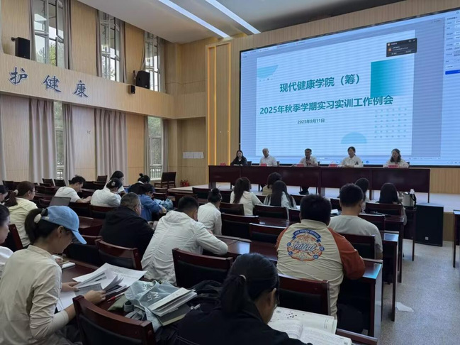 为进一步压实实习实训管理责任、提升实践教学质量,推动实习工作规范化、精细化开展,9月11日,现代健康学院(筹)组织召开2025年秋季学期实习实训工作例会。现代健康学院(筹)班子成员、全体实习指导教师、班主任及23级年级辅导员参会,共同研判实习工作重点、谋划推进新思路。