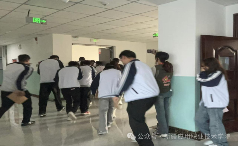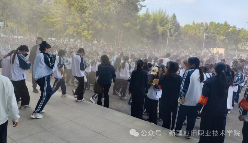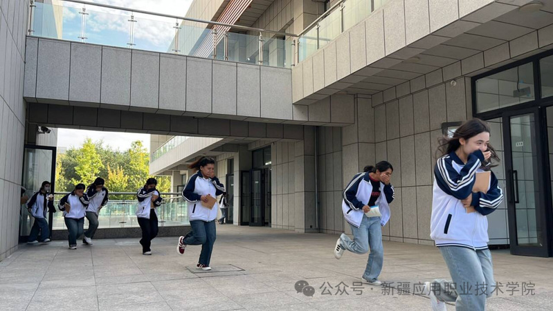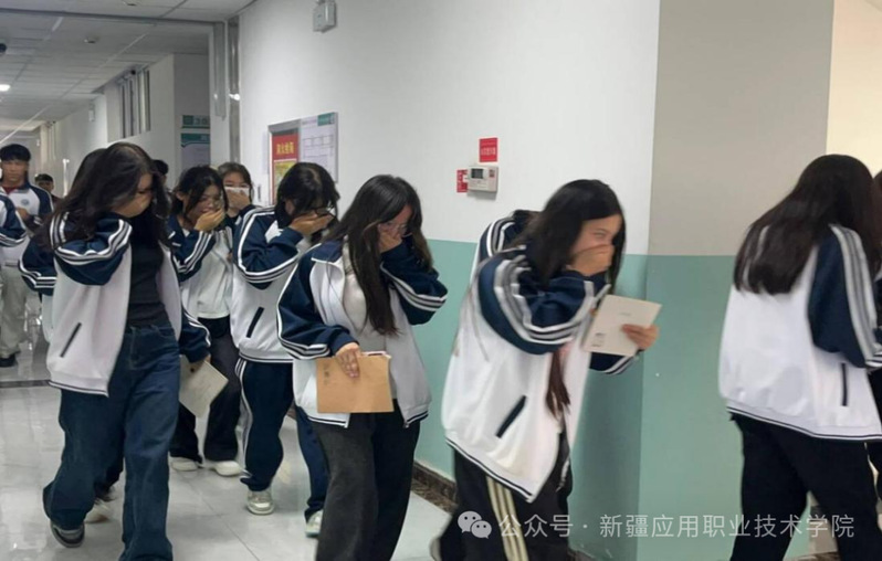 下午17点时,消防警报准时响起。各楼栋内,新生迅速响应教官提前讲解的逃生要点,用湿毛巾捂住口鼻;宿管委员会成员在楼层内引导疏散方向,协助维持秩序;团学干部则在楼梯口、楼外通道等关键位置值守,配合教官提醒新生“弯腰低姿、保持间距”。多方联动下,新生们沿预设路线快速向空旷集合点撤离。