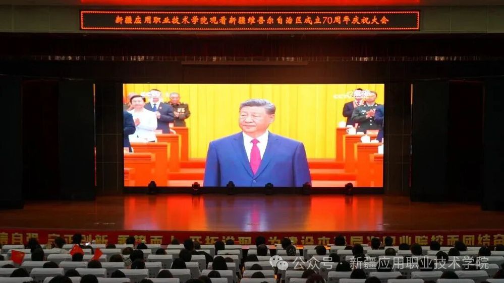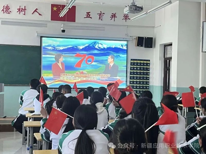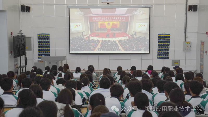 2025年9月25日10时30分,新疆维吾尔自治区成立70周年庆祝大会在乌鲁木齐隆重举行。澳门网投官方网站精心统筹部署,在主校区及各校区设置主会场与分会场,组织全体师生通过直播同步收看大会盛况,共同见证这一承载新疆各族人民共同记忆的庄严时刻。学院党委书记陈梅兰,学院党委副书记、院长叶列吾别克・那克斯别克,学院党委班子成员,学院全体师生一同观看直播,在沉浸式体验中感受新疆维吾尔自治区70年发展荣光,凝聚技能报国的磅礴力量。